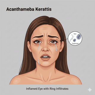 アカントアメーバが角膜に感染すると、抗体反応を起こし、炎症を起こします。具体的な症状としては、眼に強烈な痛みや赤みが出たり、涙が過剰に出るなどが挙げられます。